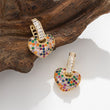 Add a playful yet luxurious touch to your everyday look with these 18K gold-plated heart huggie hoop earrings, beautifully embellished with multicolored cubic zirconia. Designed to sit snugly on the ears, these heart-shaped huggies offer a perfect balance of charm and elegance. The vibrant zircon stones catch the light from every angle, making these earrings a standout piece in any jewellery collection.